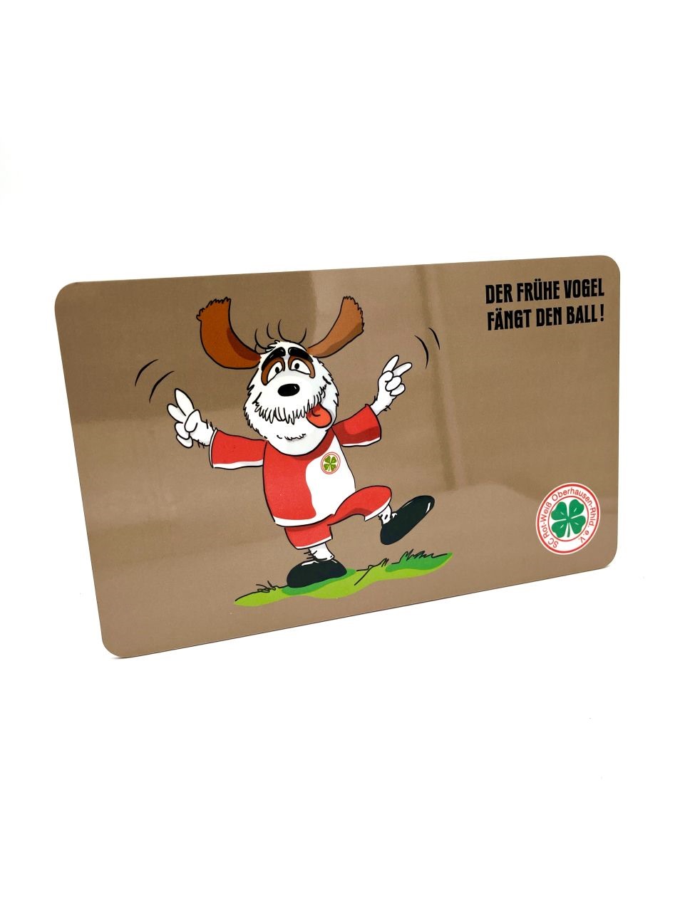 Beim Frühstück fast unverzichtbar - das Frühstücksbrettchen. Hier mit dem schönen Spruch "Der frühe Vogel fängt den Ball!".